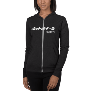 Hot Wheels Japanese Logo Unisex Zip Charcoal Black Hoodie