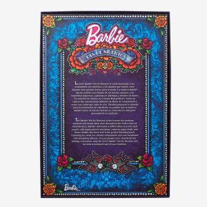 The Barbie Signature Día De Muertos Collection honors the customs. symbols. and rituals often seen throughout this festive time of remembrance. Our 2022 Barbie doll wears a ruffled dress in a rich royal purple. with pigment-print skeletons. calavera sugar skulls. and flower details. Crowning her head is a vibrant cempasúchil flower and rose headband with streaming ribbons. and her bone belt is the perfect finishing touch. In gorgeous packaging featuring an original illustration. this collectible doll is ideal for display and gifting.