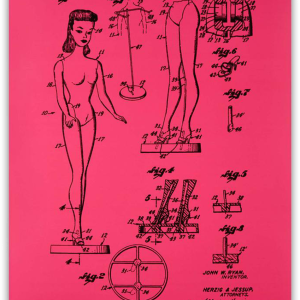 How she became a legend. Original Barbie® patent drawing. 24×36 inches. Screen print with matte finish.