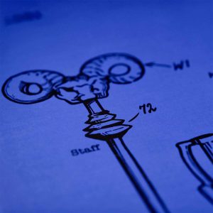 The construction of evil revealed. Skeletor® design schematic. 24×36 inches. Screen print with matte finish.