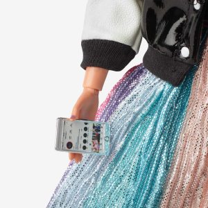 Having amassed over 2.2 million followers since its debut in 2014. the @BarbieStyle Instagram account gives fans a glimpse into the daily life of their favorite fashion icon. Now. the @BarbieStyle™ fashion doll collection brings some of the channel’s most memorable looks to life with premium fashion pieces and accessories selected by fans all over the world. The fourth doll in the series features five on-trend clothing pieces that fans can mix and match to style Barbie® doll for any occasion: a white tie-front top. shimmery pleated midi skirt. varsity jacket. classic tee and jeans. Complete any look with a pair of black sneakers or strappy heels. slim shades. an iridescent handbag. white mini purse and smartphone accessory. With a fully posable Made to Move™ body. this collectible doll invites fans to recreate their favorite shots from @BarbieStyle and design their own photo-worthy moments. Doll cannot stand alone. Colors and decorations may vary.