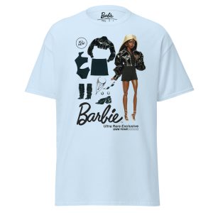 The 100% cotton Barbie Basics You Create Blue T-Shirt will help you land a more structured look. It sits nicely. maintains sharp lines around the edges. and goes perfectly with layered outfits. This exclusive Barbie design is only available through Mattel Creations.