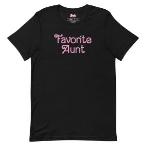 This Barbie Favorite Aunt Black T-Shirt is everything you’ve dreamed of and more. It feels soft and lightweight. with the right amount of stretch. It’s comfortable and flattering for all. This exclusive Barbie design is only available through Mattel Creations