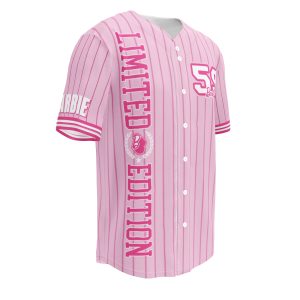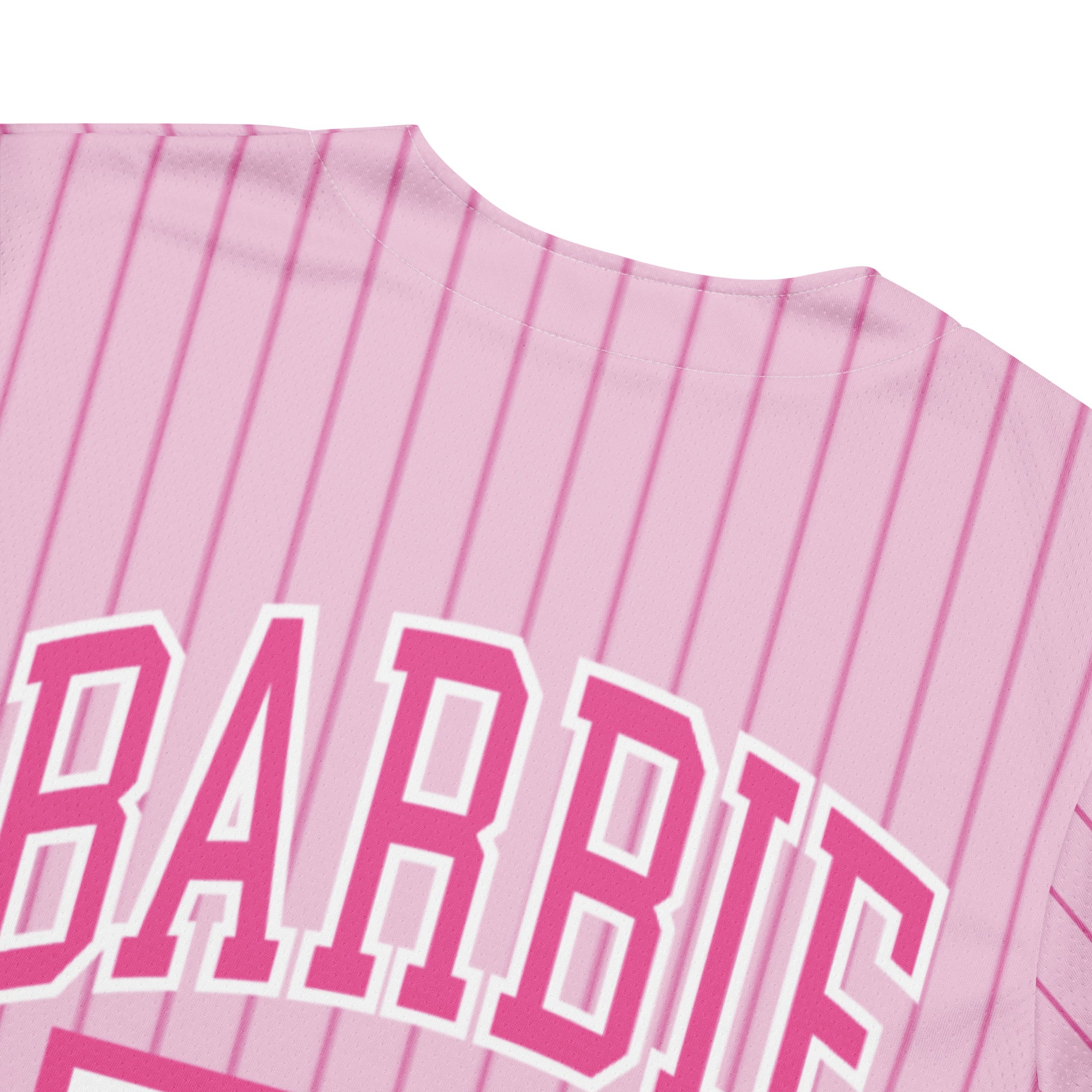 Step up your game with this classic Barbie Pink Striped Baseball Jersey. It’s made from recycled fabric and features moisture-wicking fabric for all-day comfort. This exclusive Barbie design is only available through Mattel Creations.