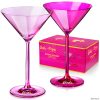 Stemmed Champagne Set: These stunning glass champagne flutes feature the iconic Barbie™ Dreamhouse colors and style to give you the ultimate Barbie™ experience at home; come with two gold metallic glasses with pink interior embellished with signature Barbie™ branding on the base