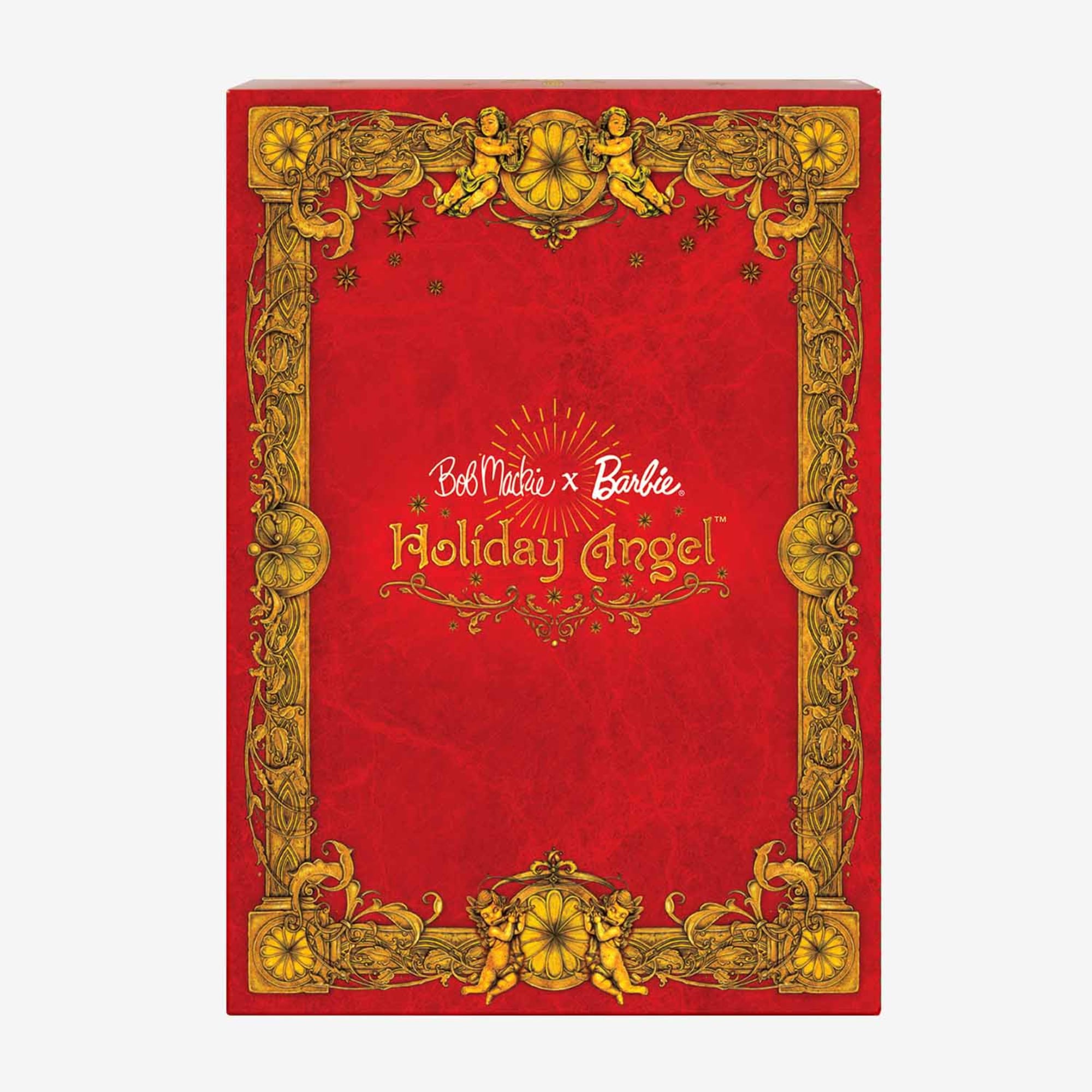 Internationally acclaimed costume and fashion designer Bob Mackie reprises his famed partnership role with one of his style muses. Barbie doll. Framed by soaring sparkly wings and a luminous halo. her striking gown is draped with an embroidered sash and shimmers from every angle as if dipped in gold. May this Bob Mackie x Barbie doll be a source of light and magic for years to come.