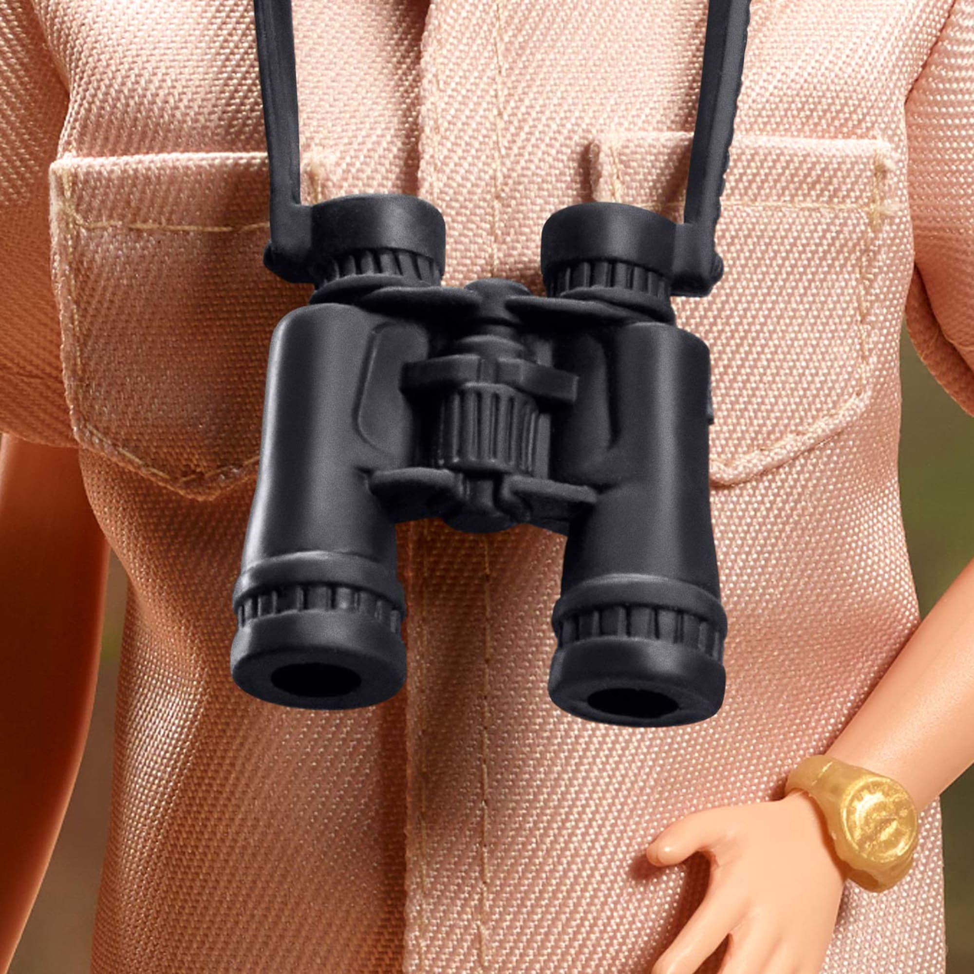 The Barbie Inspiring Women Series pays tribute to incredible heroines of their time; courageous women who took risks. changed rules. and paved the way for generations of girls to dream bigger than ever before. Recognizing decades of dedication. ground-breaking research. and heroic achievements as a conservationist. animal behavior expert. and activist. Barbie honors Dr. Jane Goodall. DBE. founder of the Jane Goodall Institute and UN Messenger of Peace. with a collectible doll made from recycled plastic*. Joined by chimpanzee David Greybeard. Dr. Jane Goodall Barbie doll wears field attire and comes equipped with a pair of binoculars and a notebook.