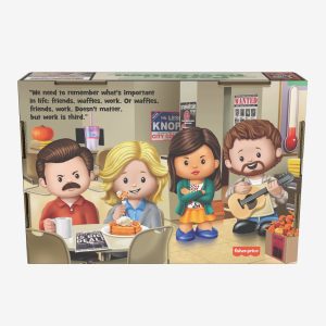 Fans can bring home four of their favorite residents of Pawnee. Indiana. with this special edition Little People Collector Parks and Recreation figure set from Fisher-Price. Relive the governmental hijinks with Pawnees Parks and Rec department including its passionate deputy director. Leslie Knope; director and woodworking enthusiast. Ron Swanson; and cynical intern. April Ludgate; plus goofy but lovable Pawnee resident. Andy Dwyer. Arriving in a specially designed package featuring illustrations and details from the show. this set is the perfect addition to any collector’s shelf.