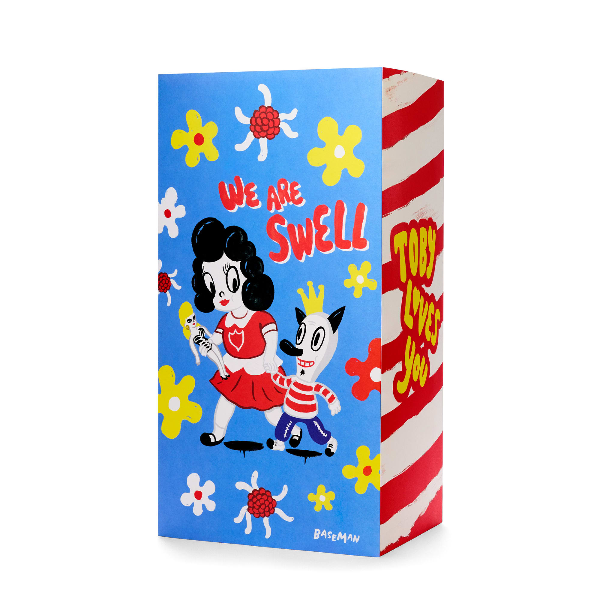 Gary Baseman married fine art with pop culture when he created one of his most iconic characters. Toby. Twenty years after Toby’s debut. he is lovingly referred to as everyone’s best friend. Knowing a thing or two about the wonder of childhood. Mattel mascot Matty Mattel joins Toby to celebrate the grooviest time on earth. A time when toys ruled the world. This collector plush is a reminder to never stop playing. enjoying. and being. There’s always an adventure to be had and Toby will happily tag along.