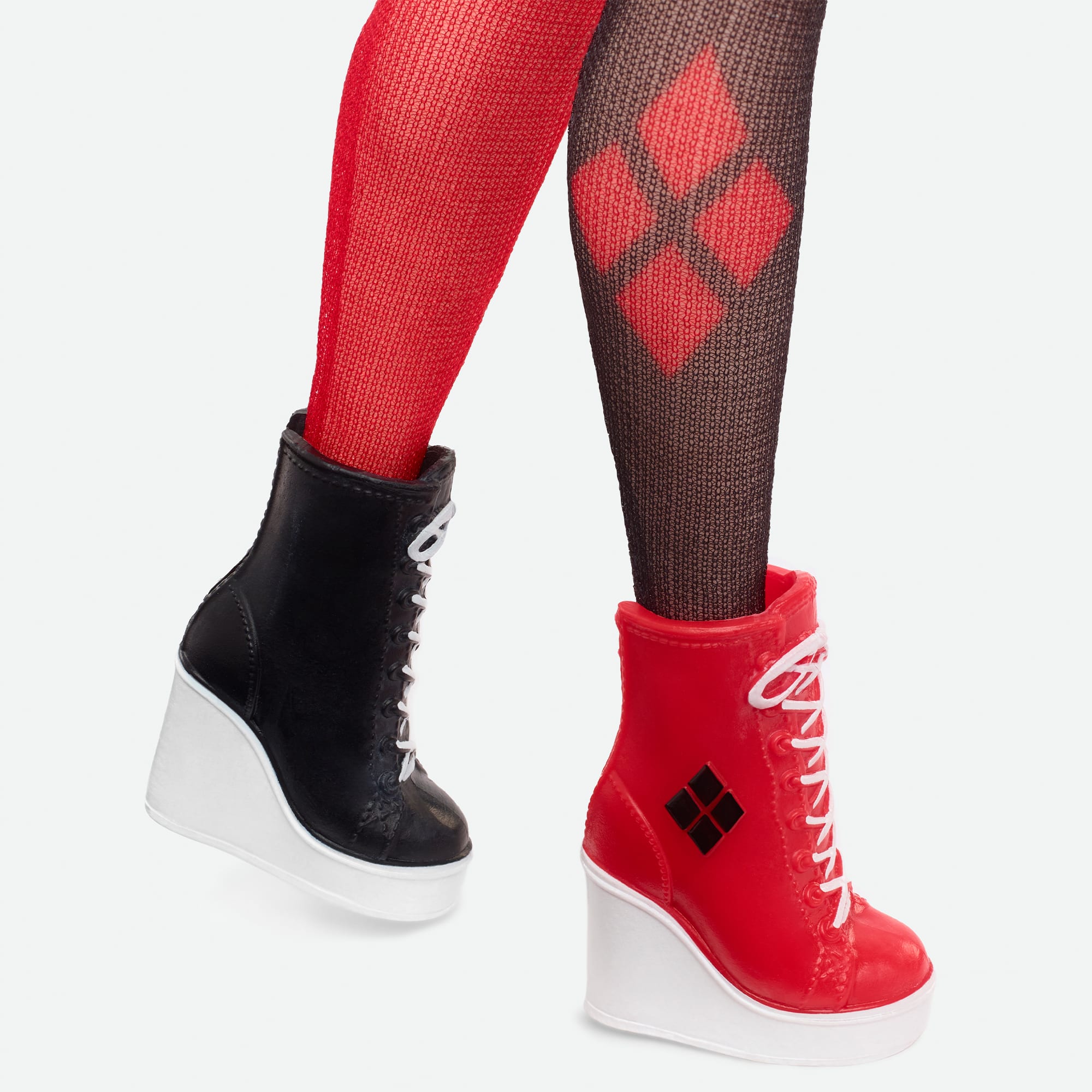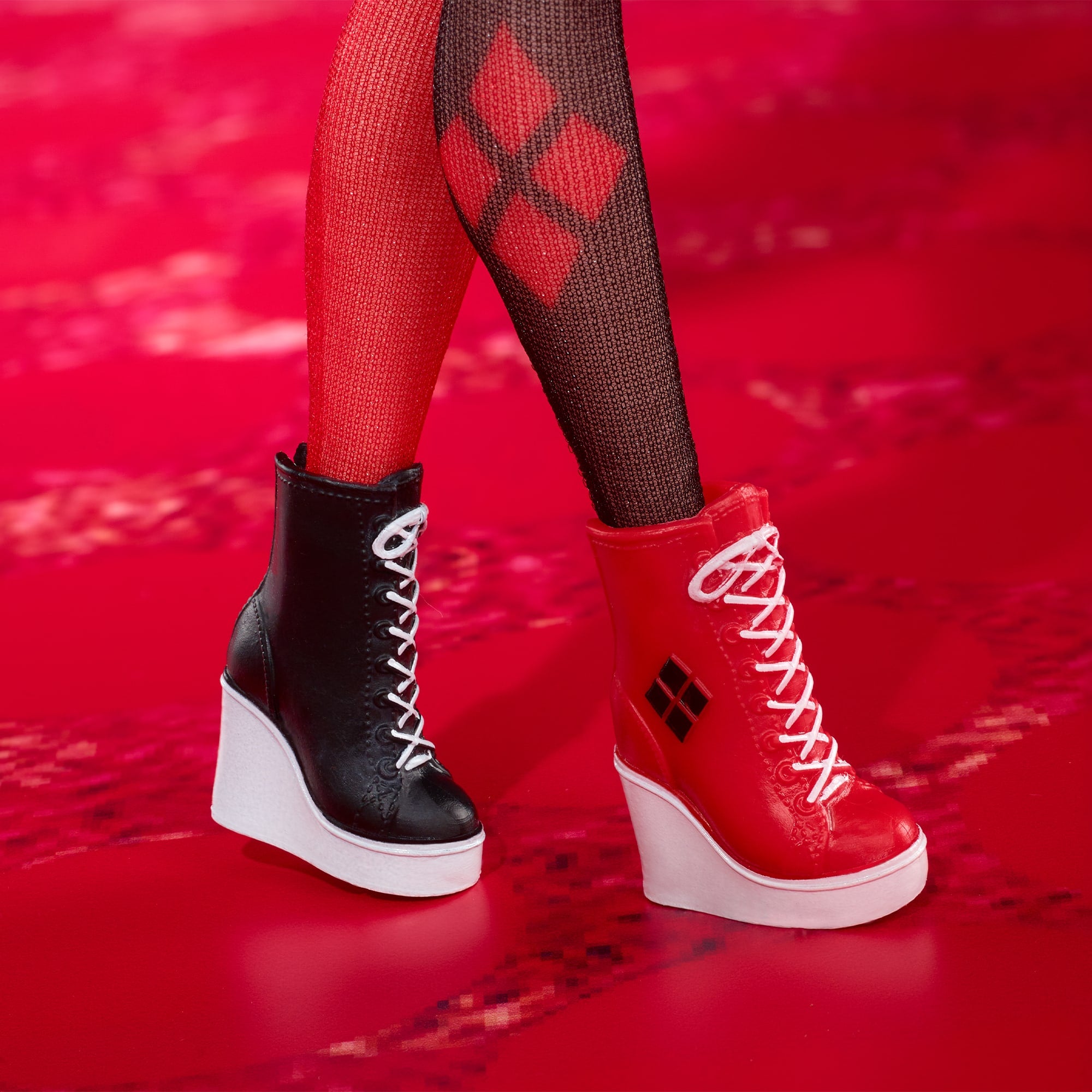 Knock knock! It’s the Clown Princess of Crime. Harley Quinn™. The punchline is. she’s got her mallet with her and she’s ready to bust in wherever she pleases. With bouncy pigtails. a black-and-red outfit. and a mischievous grin. our doll brings together the modern and classic looks of the beloved baddie. Couldja ask for anything more. puddin’?