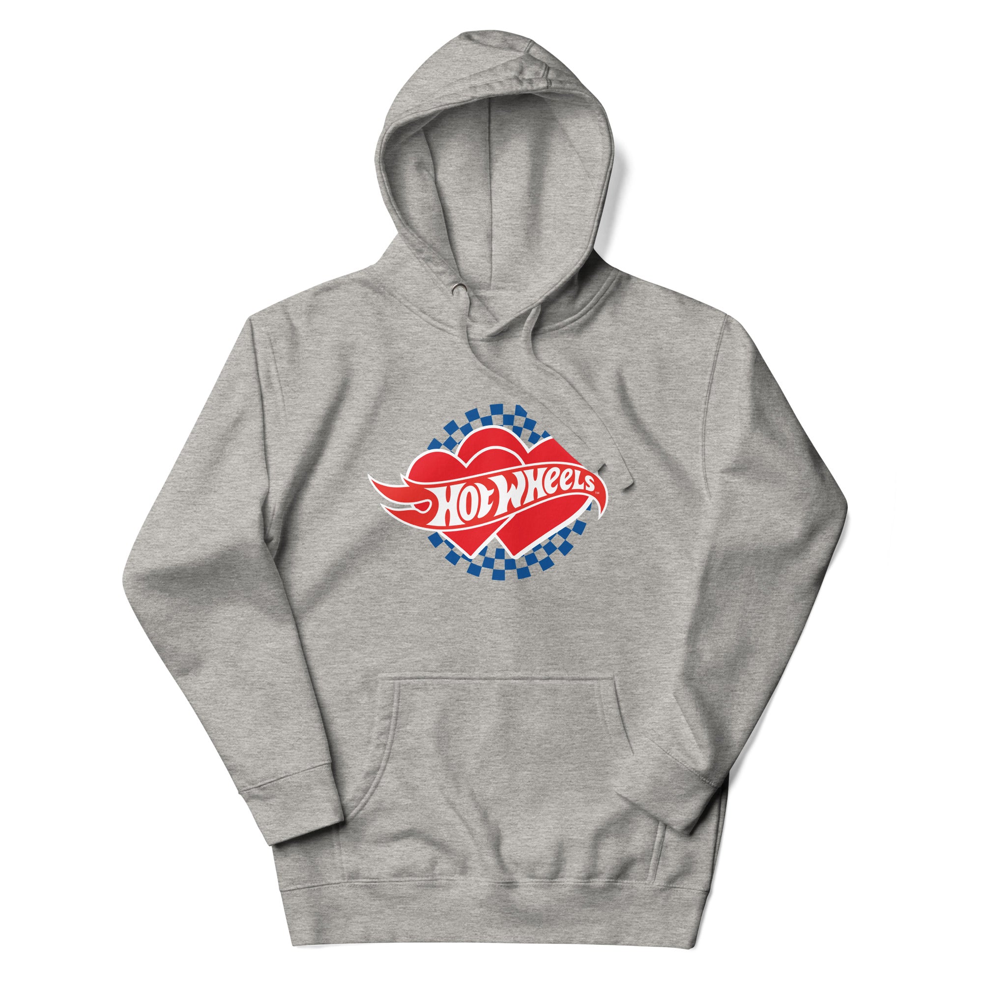 Layer up year round in this cozy. casual Hot Wheel Checkered Hearts Unisex Hoodie. With a front pocket and snug hood. it doesn’t get much better than this. This exclusive Hot Wheels design is only available through Mattel Creations.