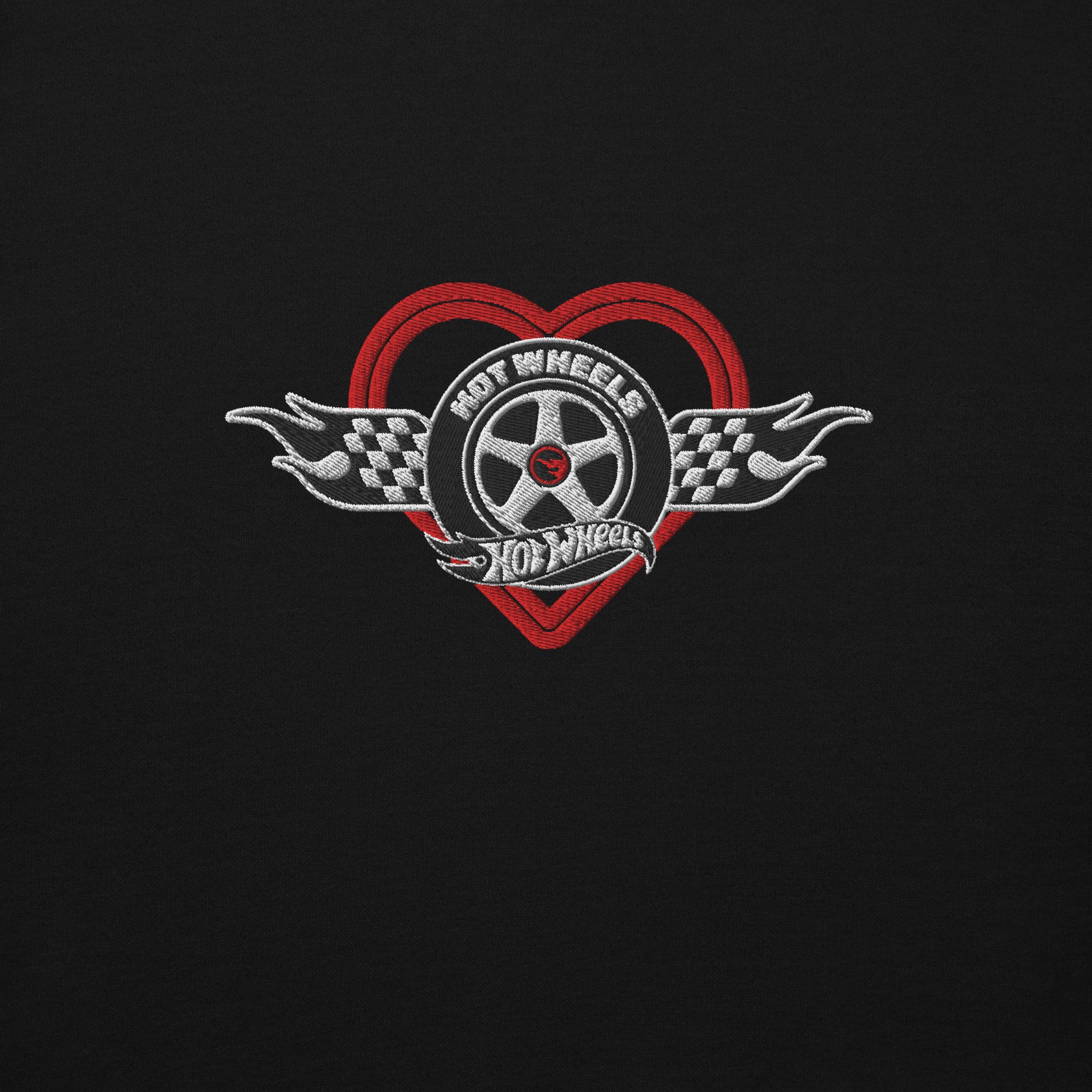 Hot Wheels Checkered Hearts Embroidered Black Hoodie