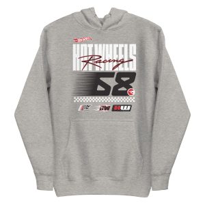 Don’t you just love sweatshirt weather? We do too. Layer up year round in this cozy. casual Hot Wheels Racing Grey Hoodie. With a front pocket and snug hood. it doesn’t get much better than this. This exclusive Hot Wheels design is only available through Mattel Creations.