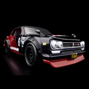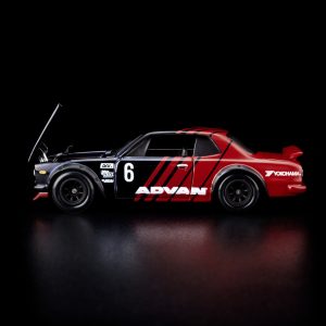 The RLC Exclusive 1972 Nissan Skyline H/T 2000GT-R is ready to take your collection to the dark side. This lightweight speed demon is a Hot Wheels classic. but our design team reimagined it with a menacing color scheme. The black and red Spectraflame paint job and exclusive ADVAN livery with authentic sponsor decals make this blacked-out JDM beauty a devilishly sinister sight.