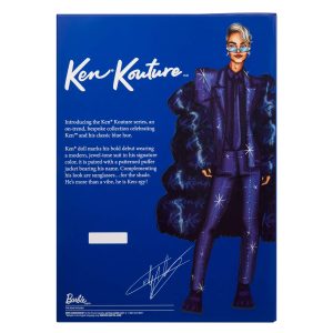 Kinetic or Kenetic? Either way. this doll has Kenergy! Ken doll steals the show in a high-drama puffer jacket worn over a metallic-inspired suit. with navy button down and matching tie. Accessories like K earrings. tinted shades. and chunky loafers add trendy detail to his outfit. while a working zipper on the jacket lends an extra premium touch. This first Ken Kouture doll ushers in the Kenaissance!