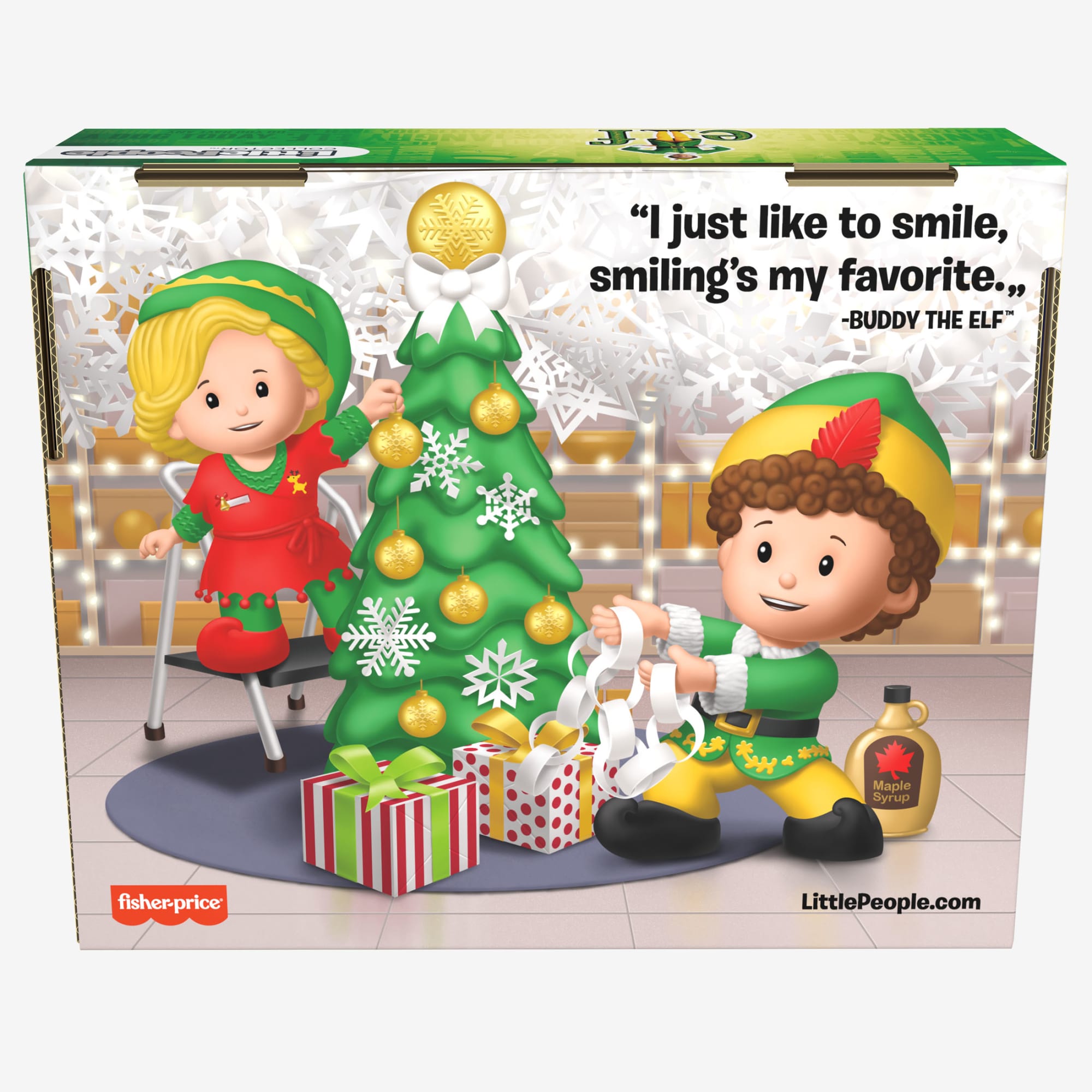 Celebrate the holiday season with Santa’s biggest fan. Buddy the Elf. with this special edition Little People Collector Elf figure set from Fisher-Price. This adorable set features a holly jolly Christmas tree and two characters from the film Elf all brought down to Little People toy size. These collector figures are a great gift for Elf fans of all ages!