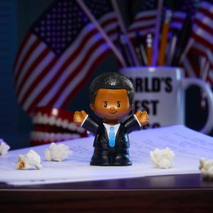 Because The Office will always live in our hearts. we created an homage to one of its most off-the-wall episodes. Introducing the Little People Collector The Office Threat Level Midnight set. This special-edition Gold Label set features four characters in character: Michael as Agent Scarn. Dwight as Samuel L. Chang. Jim as Goldenface. and Darryl as President Jackson.