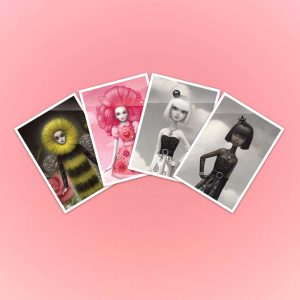 Flip through this Mark Ryden x Barbie postcard set to visit a land far away. Featuring 16 prints of art unveiled at his Pink Pop exhibition in Los Angeles. each postcard is a mini masterpiece. Send them with love in the mail or frame as wall art.