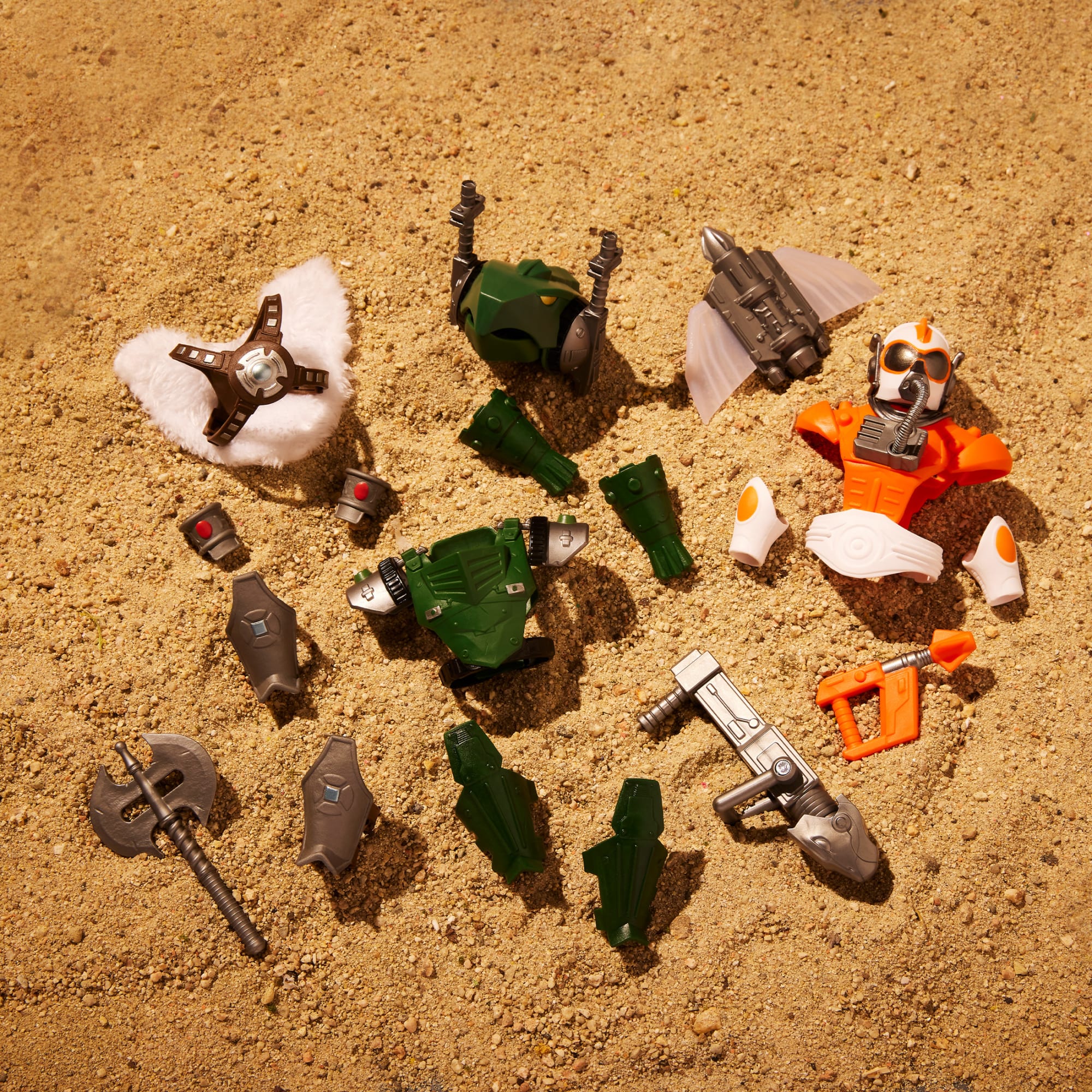 - Comes with multiple swappable body parts. weapons. and accessories