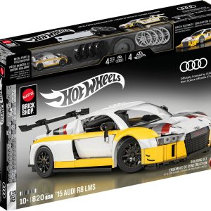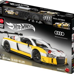 Buckle up and get ready for high-octane speed with the buildable 1:16 scale ’15 Audi R8 LMS by Mattel Brick Shop. This detailed and authentic set includes decals for customization. two sets of wheel covers. a metal signature plate. plus an exclusive matching metal car. Collect all the cars in the Elite Series and build your collection.