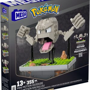 Motion Pokémon building sets are now available in mini form. Build the model and press the hidden button to see Geodude’s fists move up and down. At 5 inches tall. this set is ideal for your desk or bedside table. Pair it with other Mini Motion or standard Motion sets for an impressive Pokémon collection with MEGA.