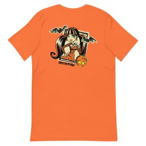 This Monster High Draculaura Embroidered Orange T-Shirt is everything you’ve dreamed of and more. It feels soft and lightweight. with the right amount of stretch. It’s comfortable and flattering for all. This exclusive Monster High design is only available through Mattel Creations.