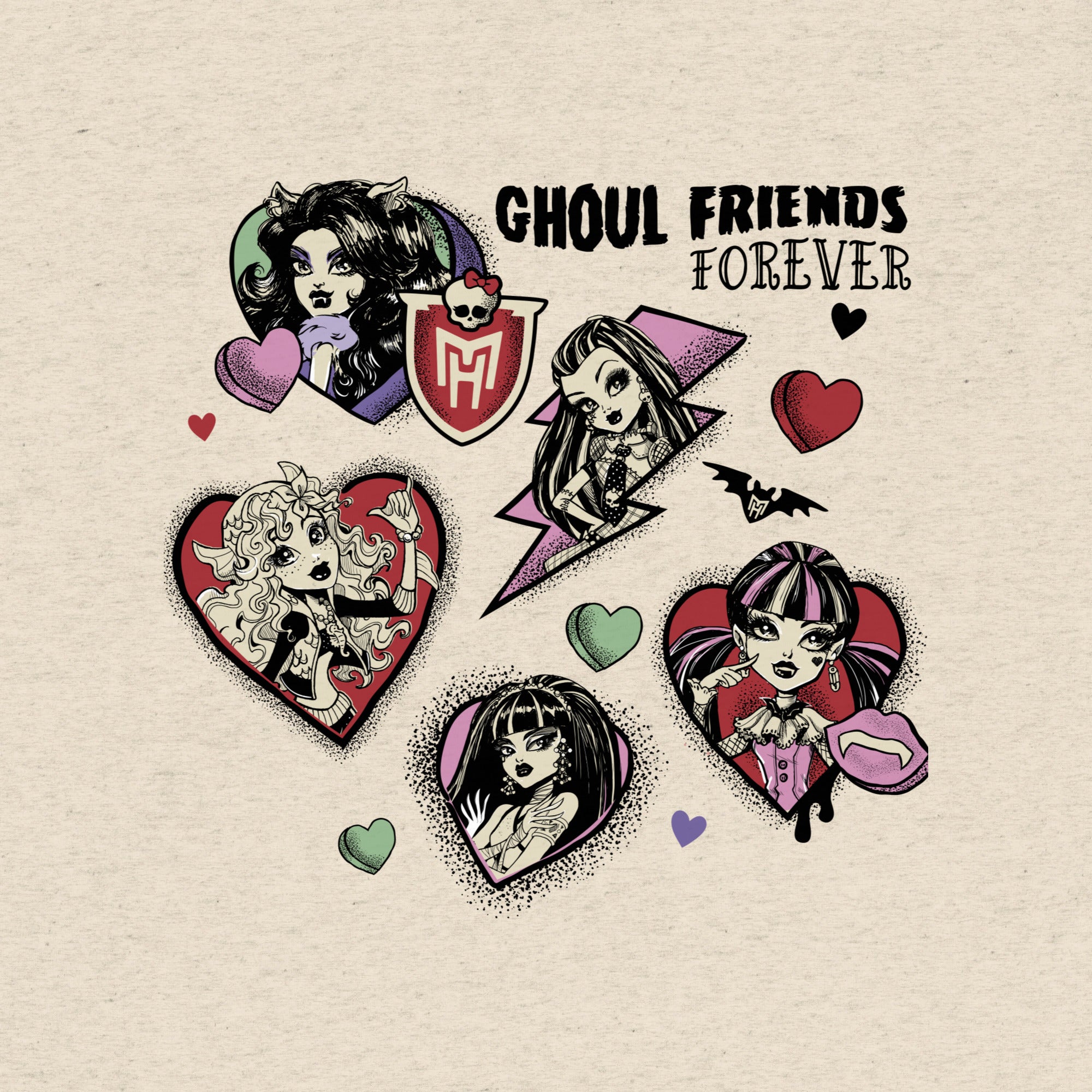 The tri-blend fabric of this Monster High Ghoul Friends Forever Unisex T-Shirt creates a vintage. fitted look. And extreme durability makes this t-shirt withstand repeated washings and still remain super comfortable.