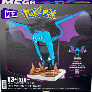 Motion Pokémon building sets are now available in mini form. Build the model and press the hidden button to activate Golbat’s wing-flapping motion. At 5 inches tall. this set is ideal for your desk or bedside table. Pair it with other Mini Motion or standard Motion sets for an impressive Pokémon collection with MEGA.