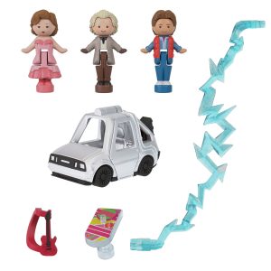 - Comes with three micro characters: Marty McFly. Lorraine McFly. and Doc Brown