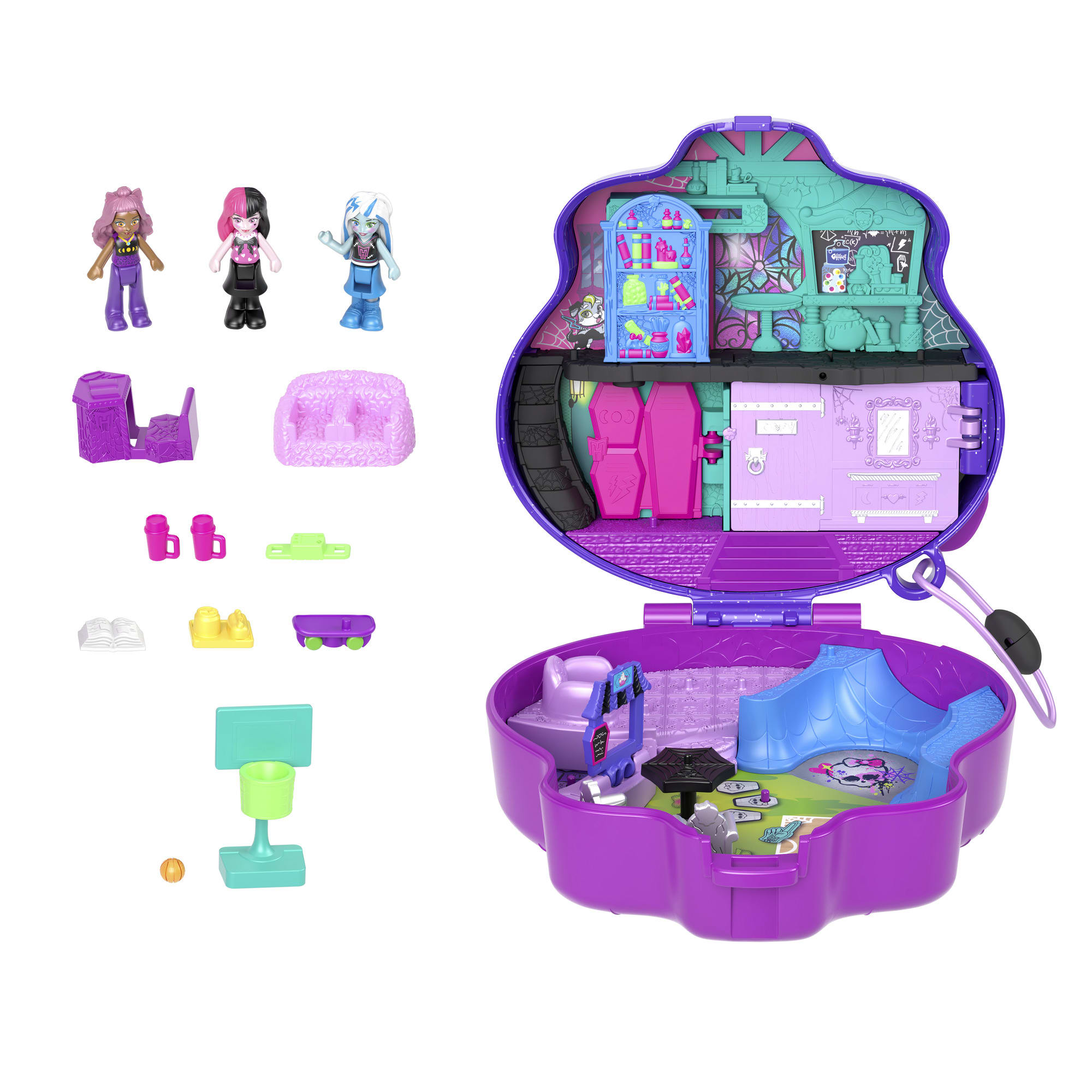 - Fang-out with your favorite ghouls as they go tiny in this Monster High x Polly Pocket collaboration compact!
