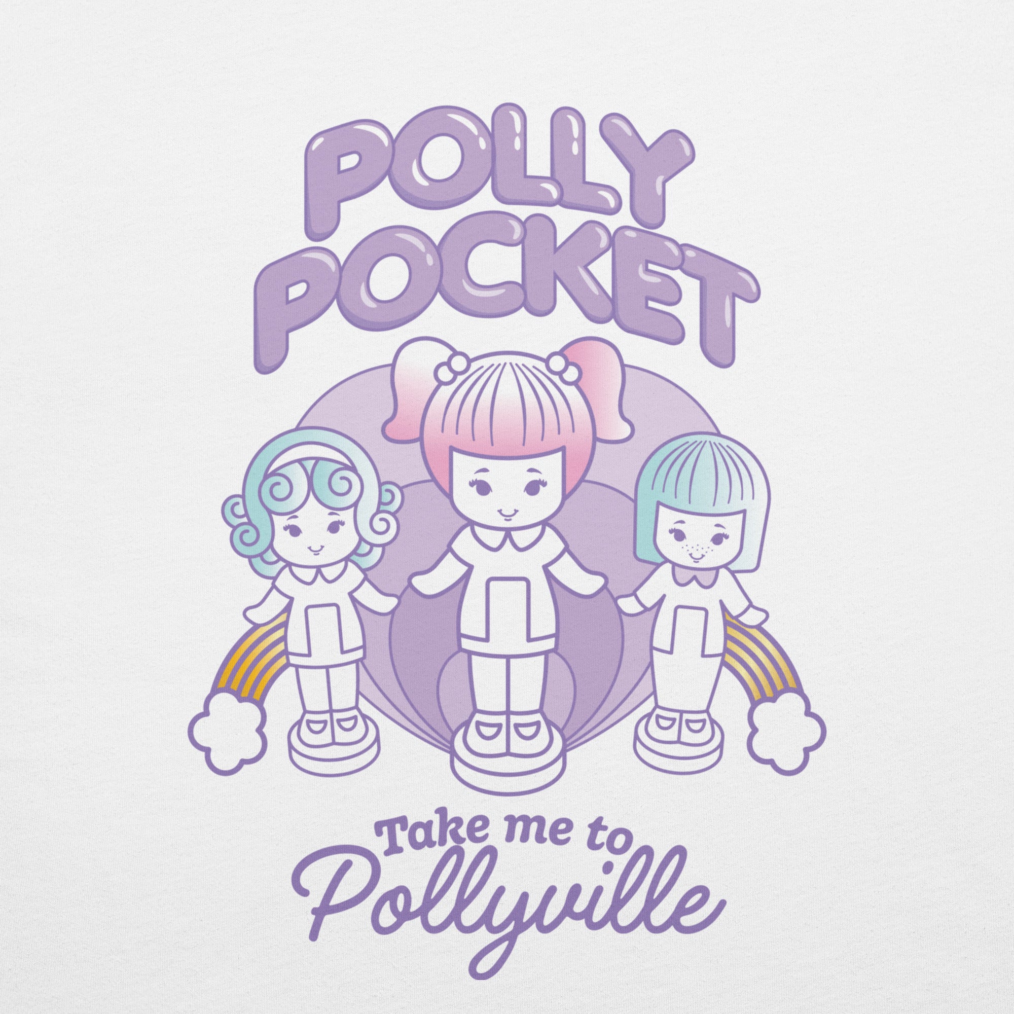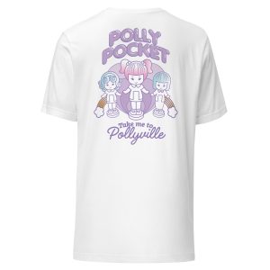Our Polly Pocket Take Me To Pollyville Embroidered White T-Shirt is everything you’ve dreamed of and more. It feels soft and lightweight. with the right amount of stretch. It’s comfortable and flattering for all. This exclusive Polly Pocket design is only available through Mattel Creations.