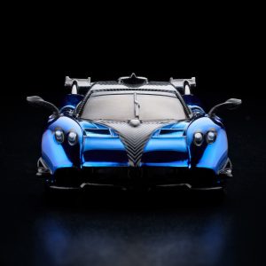 It’s baaaack. But this time. the track-hugging ’21 Pagani Huayra R in Spectraflame blue comes with a carbon fiber deco on its removable hood. Italian automaker Pagani has been building flashy. superfast machines since 1992. Our Huayra R evokes the 1:1 that boasts a 720-hp twin-turbocharged V-8 engine sourced from Mercedes-AMG. It’s bound to break records on the track and in any collection.