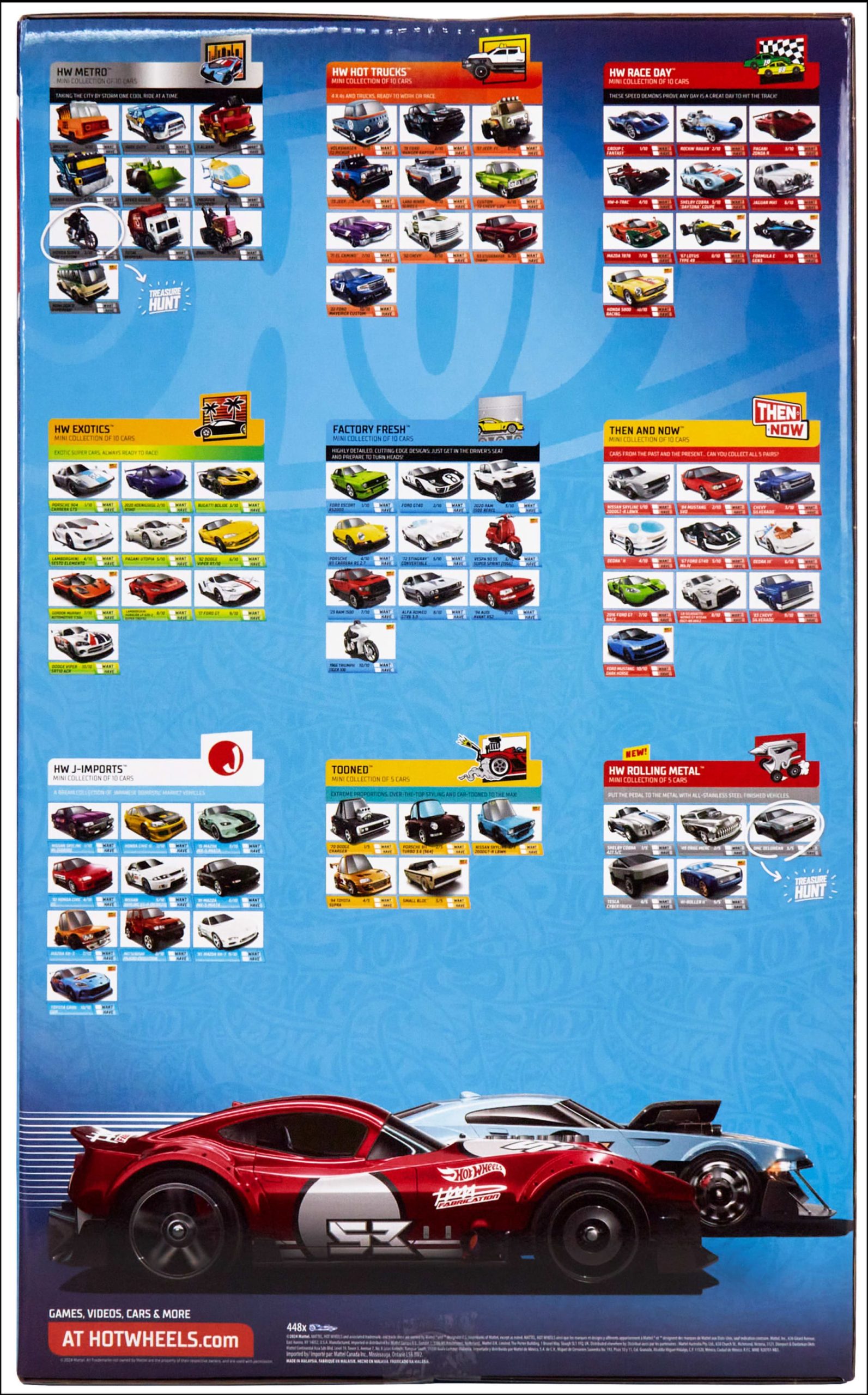 For the true Hot Wheels aficionado. this is the pinnacle: a complete 2024 Mainline set featuring 448 vehicles. factory-sealed and untouched. This is the only way to snag any models you missed. and guarantee you get the rare Treasure Hunt vehicles and even rarer Super Treasure Hunts. More than a collection. it’s an instant legacy piece for any Hot Wheels enthusiast.