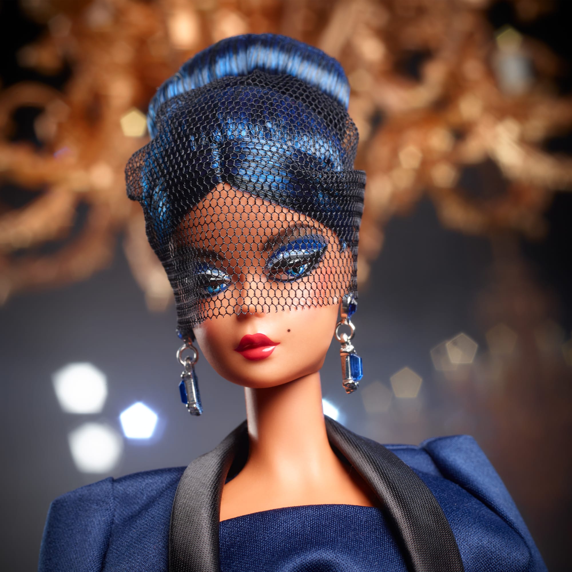 Commemorate 65 years of Barbie with a glamorous doll that also heralds the return of the beloved BFMC (Barbie Fashion Model Collection) series. To symbolize her anniversary milestone. she sports a sapphire-inspired ensemble. including jewel-toned jacket and midi dress with dazzling gemstone earrings. Her elegant opera gloves. evening handbag. and stiletto boots complete the celebratory look. A fitting tribute to an extraordinary legacy!