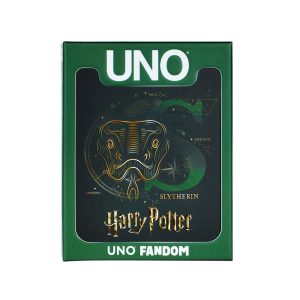 Bring out your obsession for game night. UNO Fandom has partnered with Warner Bros. to create a whole new twist on the classic party game. With cards featuring the Slytherin™ crest and special Wizarding rules. this deck is sure to make anyone who’s dreamed of getting sorted into Slytherin go absolutely WILD.