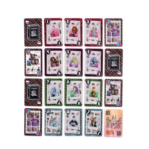Classic UNO gameplay meets Monster High characters and iconography. in honor of the 15th anniversary of the day New Salem’s school bells first rang. In this deck. a wicked wild card can make you the editor of the Fearbook. Play it and all other players must show a pair of cards from their hand that makes a complete Fearbook. If they can’t do it. they have to draw cards until they can. It’s gonna be a frightfully fun game.