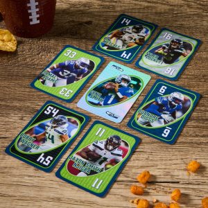 Bring out your obsession for game night. UNO Fandom has worked with the NFL and NFLPA to create a whole new twist on the classic party game. With cards featuring images of your favorite players from the Seattle Seahawks. this deck is sure to make any fan go absolutely WILD.